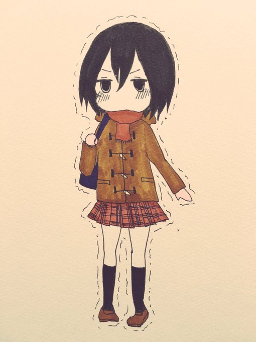 #ミカサ版深夜の真剣お絵描き60分一本勝負 「おニューのコート…これで防寒対策は完璧…!」(ガタガタガタガタガタ 「足を隠せ」