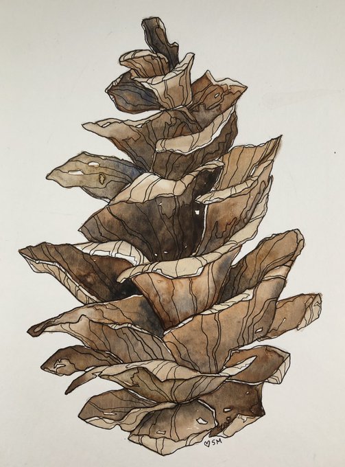 A #watercolour pine cone painted for my daughter! #artists #ArtistOnTwitter #watercolorpainting