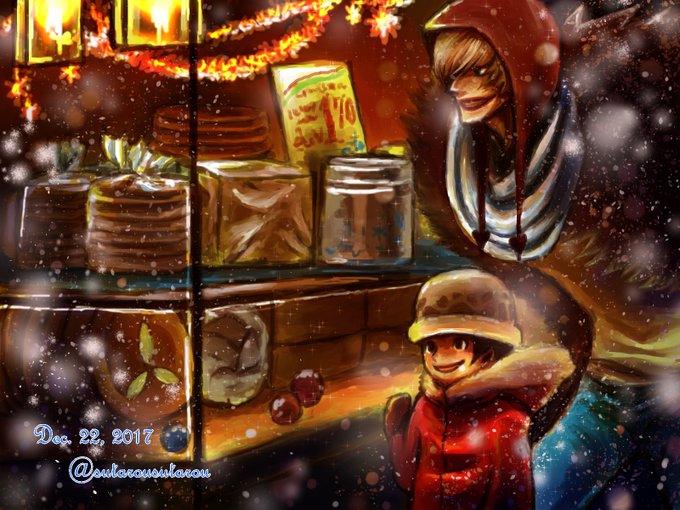 雪が降ってきたので、コラさんはローにコートをかける。