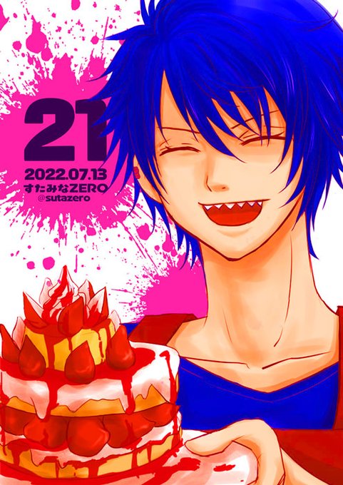 24歳ヒースwithB。 金剛が焼いてくれたシュークリームが爆発する誕生日。かわいそうな誕生日絵でクソごめんwww ヒーちゃんおめでとう!来年も祝おうね。 #ヒース誕生祭2023