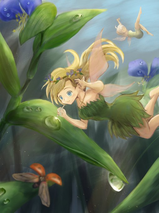 #lackhw テーマ【水のイラスト】 タイトル「朝露」 朝日を表現したくて1週間試行錯誤し撃沈。またどうしてもトーンカーブが2山できてしまって打開できず、行き詰まりました。誰か助けてください。。