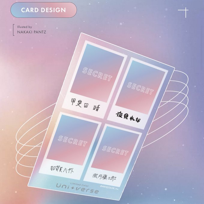 期間限定で、専用購入ページにて 2023年春夏限定「Uni+verse 」シリーズの購入者対象にチェキ風カード(全1種,複製サイン&メッセージ入り)をプレゼント