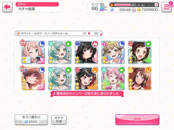 りんりん二回連続で来たやん (((そしてあまりプレイせず溜め込んでるというのがすぐに分かるスクショ)))