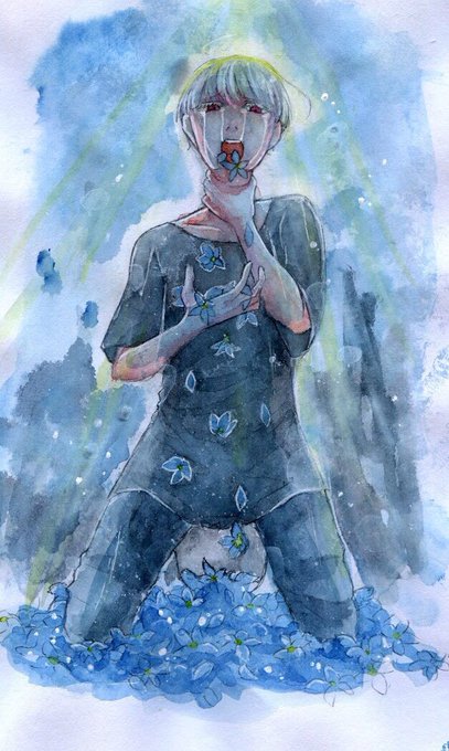 透明水彩といいこのオリキャラといい花吐き病といい、全てが久々です。 青系の絵ってエモいよね。