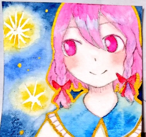 半年前に描いた絵(3枚目)のリメイクです 金色きらきら〜✨ #透明水彩 #イラスト