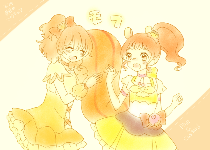 少し遅刻してしまったけどパイン&カスタード~!黄キュア大好きっ #プリキュア版深夜の真剣お絵描き60分一本勝負
