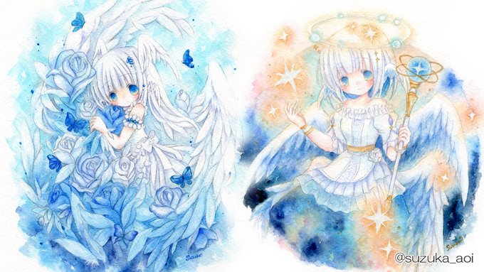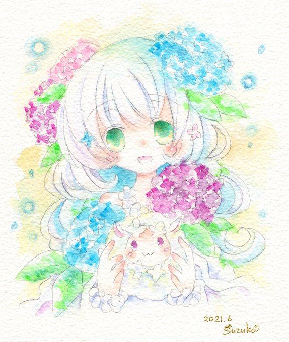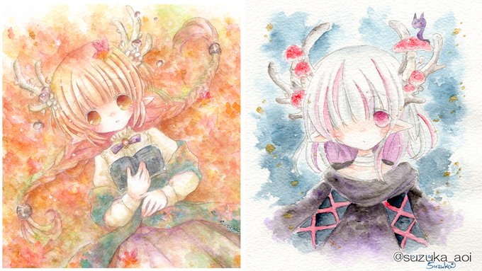 透明水彩でこんな感じの子たちを描いております。