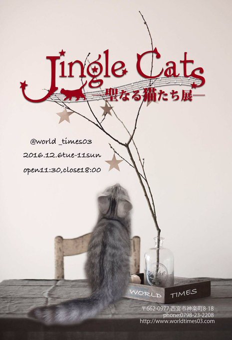 【展示】猫展に参加します ◆12/6(火)~11(日) ◆11時半~18時 ◆夙川ワールドタイムス(カフェ) イラストや絵画展示・雑貨販売など カフェなのでゆっくりお寛ぎいただけます♪