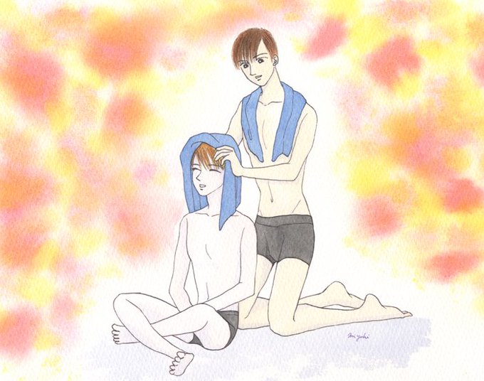 お風呂上がりの鈴薪ちゃん。 バックの黄色ちょっと合わなかったけど、先日戴いた日本画えのぐを試したかった。