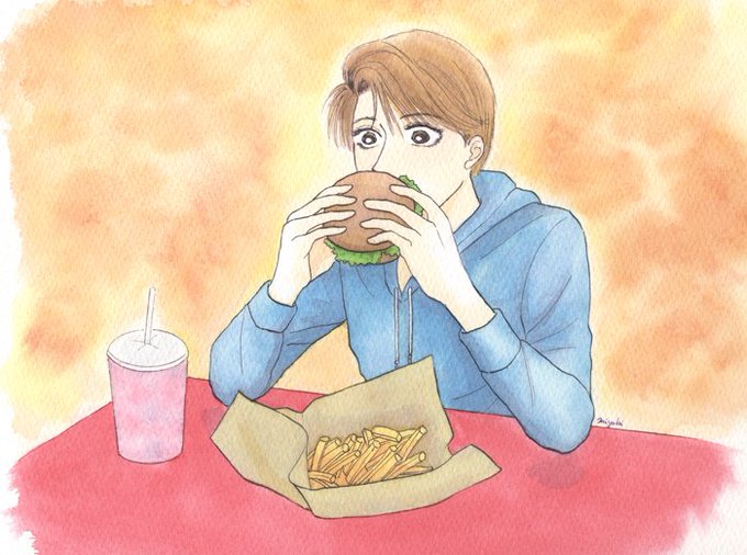 鈴木先生に連れられてのファストフードチャレンジ薪さん。