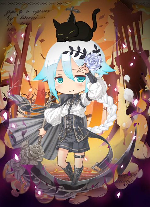 元にしたメーカーさんがこれなので、黒髪に青の差し色、ぴよ毛は青白い、お目めは濃い青から水色グラデ、羽エプロンみたいな服は白でインナーとスカート上部の布が紺色、羽袖は薄水色い白、ボタンは金ですね。