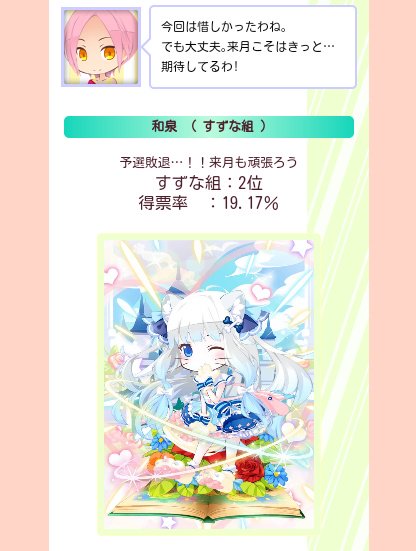 あと、2位のわりに得票率高かった泉ちゃん。 もうしばらくは引退しなくてもいいかな、なんて元気を貰いました。 ありがとうございました(*´ ˘ `ㅅ)