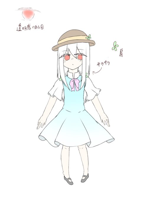 @Mazu_sityu 一応配色できたよー!! もうちょっと髪の色抑えめでいいかなこれ🤔