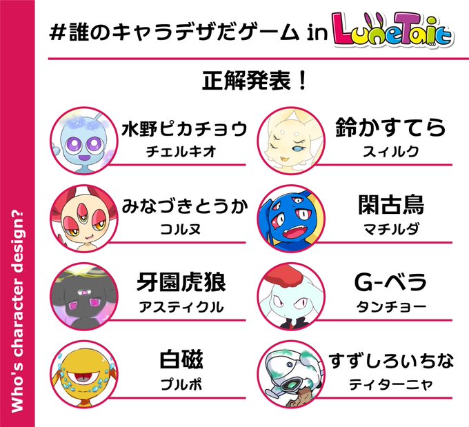 #誰のキャラデザだゲーム 結果発表‼︎ 私、すゞしろが描いたのは⑧のラプターさんだったのです‼ありがとうございましたセプ〜‼︎ ︎……ちらほら正解者出てたな… 企画提供:@asatuyu_rano
