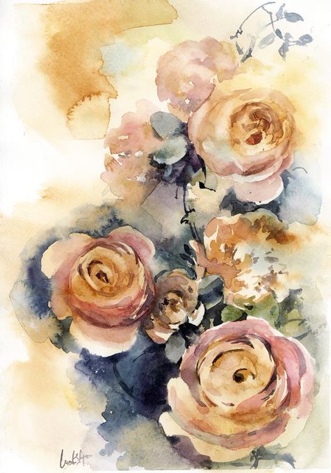 Peach Roses Original Watercolor Painting, roses watercolour art, flowers painting, botanical watercolour painting art #PaintingOfRoses #RosesPainting