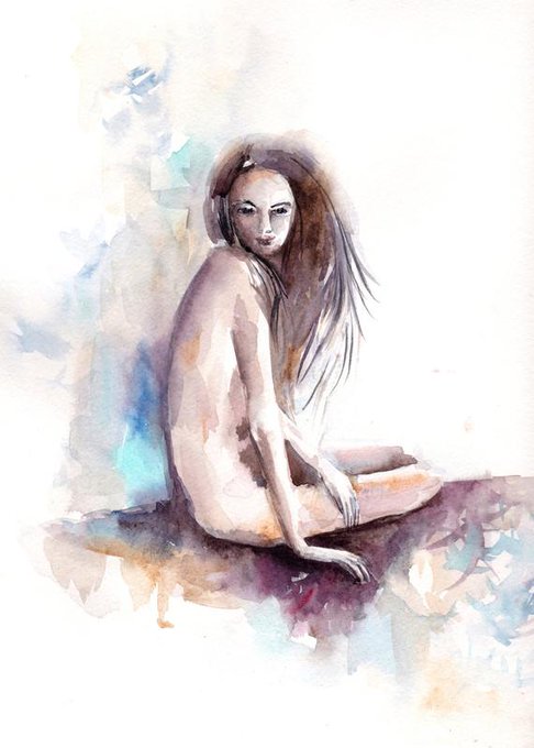 Female nude watercolour painting, Original watercolor painting, nude art, woman sitting figure modern painting #FemalePainting #FemaleNude