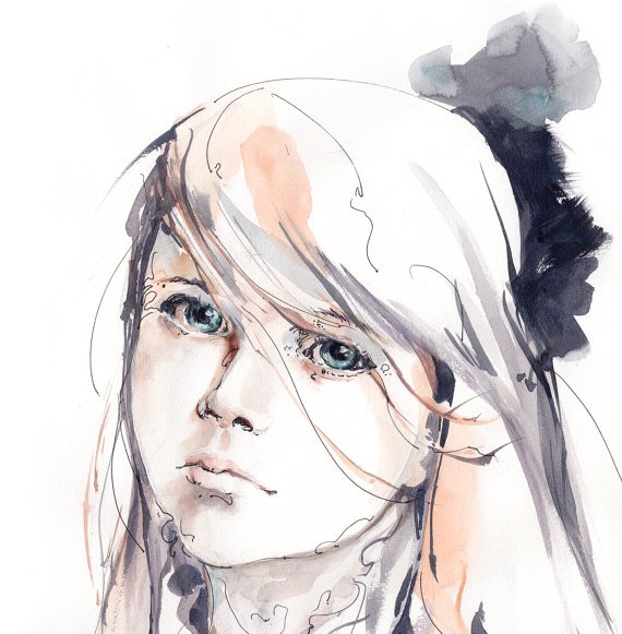 #Girl #Portrait #Painting ORIGINAL Mixed Media Painting, Watercolor and Ink, Girl's Portrait watercolour painting art #commission #custompainting