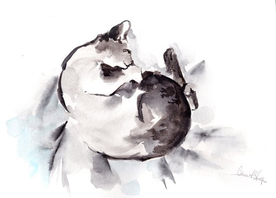 Sleeping #cat , #minimalist #painting, ORIGINAL Watercolor Painting, cat art, cat painting