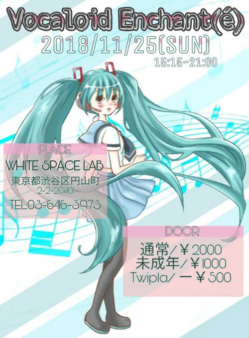 [TwiPla] 2018/11/25(日)15:15 ボーカロイドDJイベント【Vocaloid Enchant(é)】in 渋谷White space lab #ボカエン https://t.co/PxGmMVXkRh
