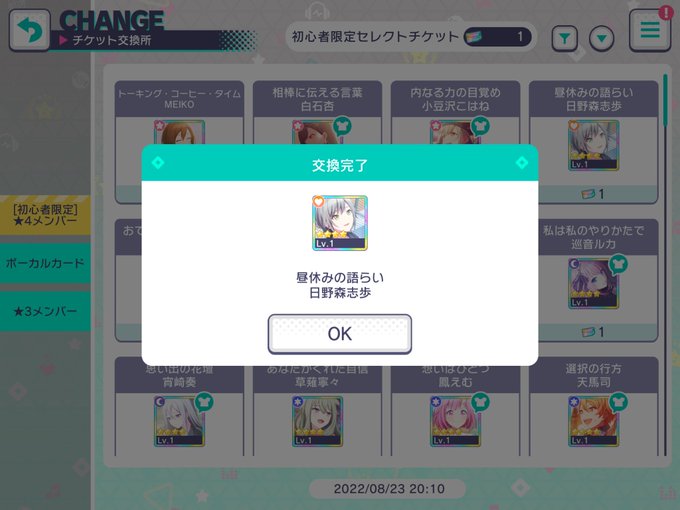 プロセカの初心者用のセレチケは志歩ちゃんにしたよ