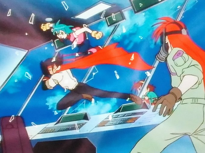 ドモンやアレンビー達ほどではないにしても、これまでの描写からレインも思ったより身体能力は低くないようなので、バリア管制塔への窓からの突入くらいなら何とかなるんだろうな。たぶん。 #Gガンダム #TOKYOMX