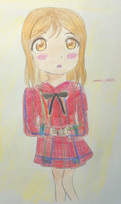 赤いチェックのワンピースを着てる花丸ちゃんを描きたくなったので、描いたずら💮(気まぐれです) #お絵描き #スズランの衣装製作