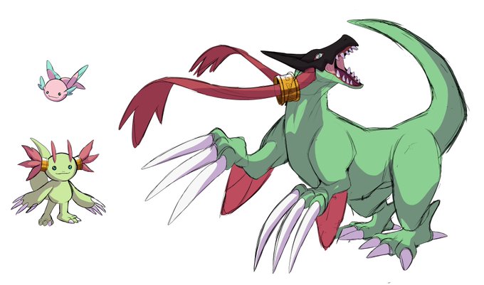 took a break from the webtoon draft, so i sketched the evolution line of my digimon