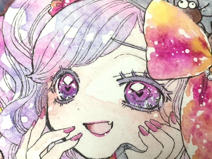 髪や瞳にキラキラのラメが入っててすごく綺麗!コレが鉛筆ノヲト様のキラキラ絵の具なのですね〜!うっとりした表情はずっと観てられるかわいさです〜お供のクモ君もクリーンジェル大丈夫?綺麗好きなのかなっ!?賑やかハロウィンです〜♪コウモリ娘ちゃんは姉妹でしょうかーぱっつん前髪がキュートっ