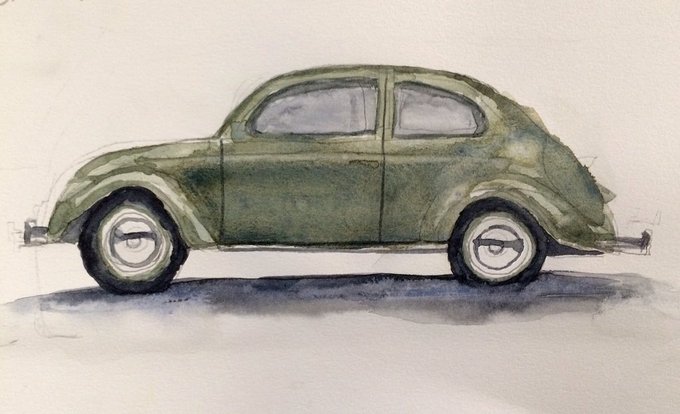 1952 VW by Milo age 9. #watercolourpainting #painting #vintage #vwbeetle #vw #vintage #Iconic #Cars #BigArtBoost