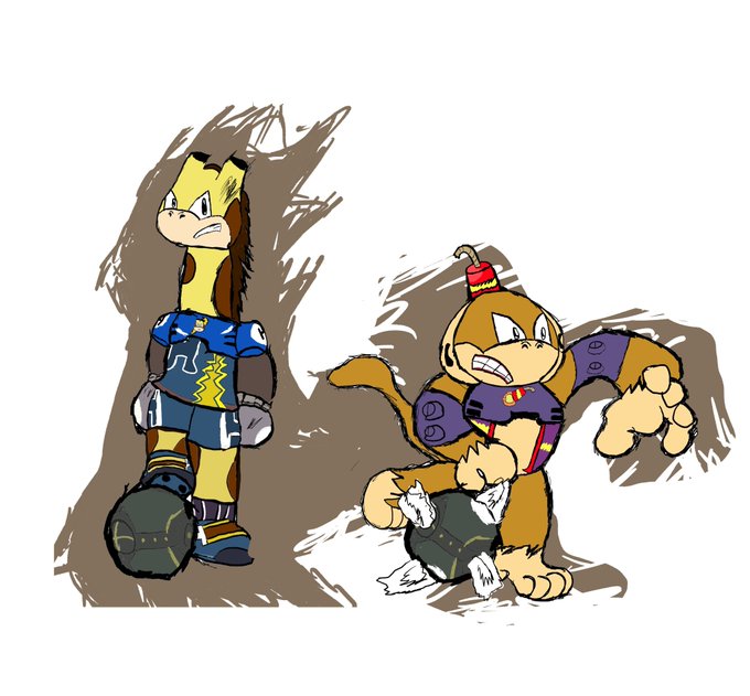 Decided to redraw Height and Mango in the Mario Strikers style, left:new, right: old designs from last year.