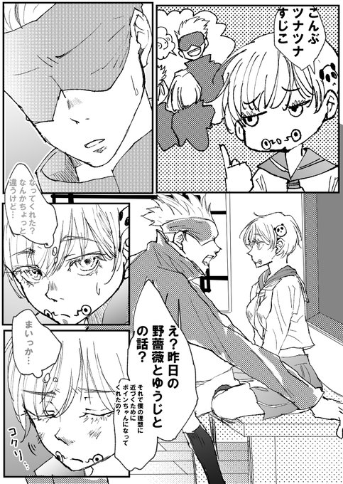 ボイン続きです! いつも押し倒して終わってますwちなみに全力で棘君を拉致ったのは(こんなかわいい姿で他の奴に見られたら大変な事になる!!!)っていう焦りからですw #五棘 #漫画