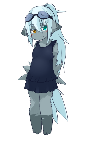 【青肌】【ジト目】【イカ腹】【ロングコート】【まろ眉】【角】 #フォロワーさんの好きな要素を詰め込んだ創作女子を描く