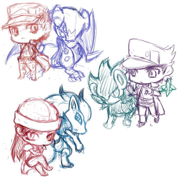 落書き欲が凄い。のでポケのクロスオーバーの続き落書きしてた。 このサイズが一番気軽に描けてよい 気抜き過ぎて頭身バラバラだけどまあこれはペン入れで直そう