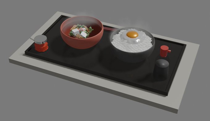 「卵かけ御飯と御味噌汁」"Fresh egg over rice a.k.a. TKG with Miso Soup" #b3d #Blender3d #3DCG