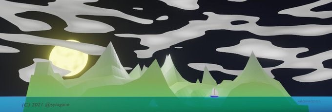 Blender習作「月夜のヨット」。