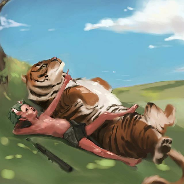 A little #dtiys of @thejedhenry's characters. Didn't have time to finish but oh well, here it is 🐯👹. #art #artistsoninstagram #sketch #digitalpainting #procreate #ipadpro https://t.co/tXBxpoq4P8