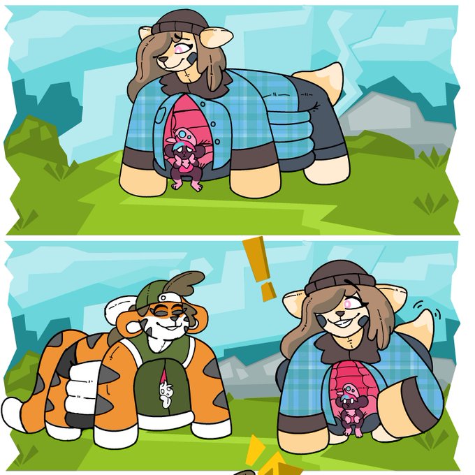 My friend @Tuft_Mouse wasn't doing so hot so I drew his OC connie with a bounce house OC I just dreamt up out of my head. (She still needs a name but I think she's into rugby or sports). To give him a cheering up and her a friend!
