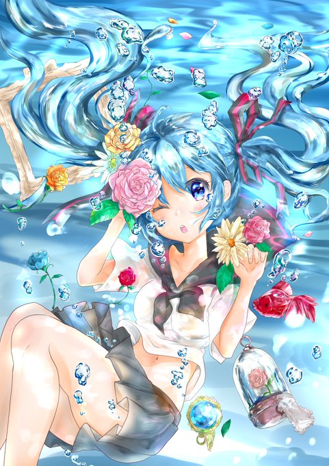 ボトルミクちゃんラフに色つけました! ぶくぶく.。o○