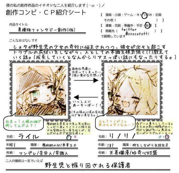 こっちはファンタジー創作のやつですー! うちの看板コンビライリノもよろしくね!!! (使い回し失礼!)