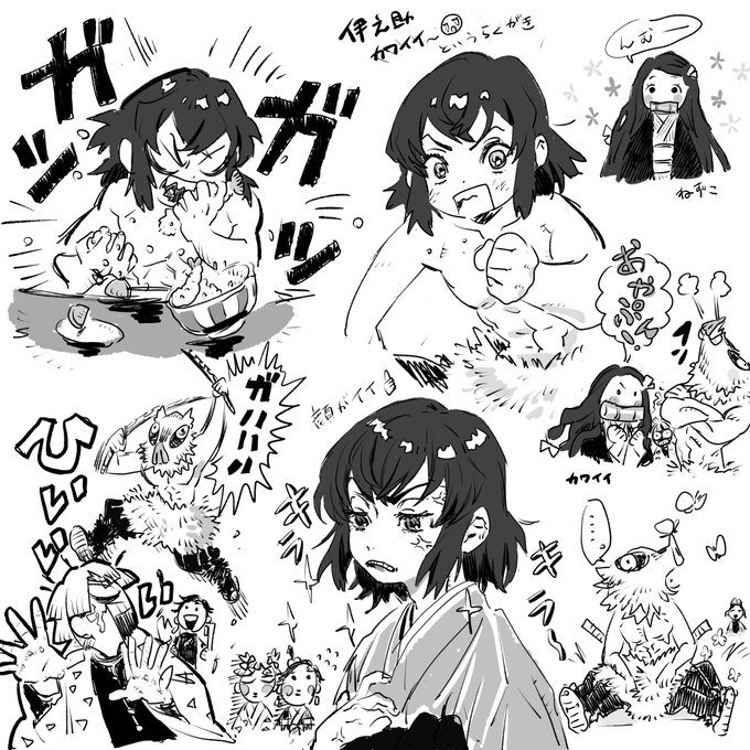 一気に最新刊まで読んだので、伊之助可愛い~~~~~😭💕という落書き…👍