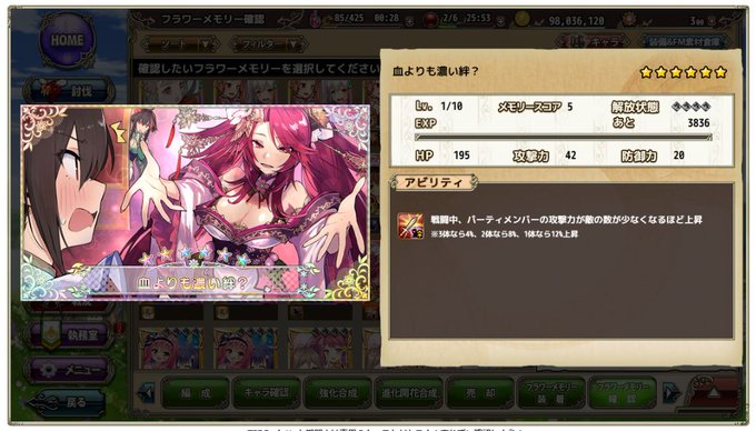 FM単発で虹。シュウ様FM出た♪ (ちなみに、うちの騎士団にはシュウメイギク様いませんw) ポーリアちゃんとかのアビと一緒、敵が少ないほど強化されるやつか #花騎士