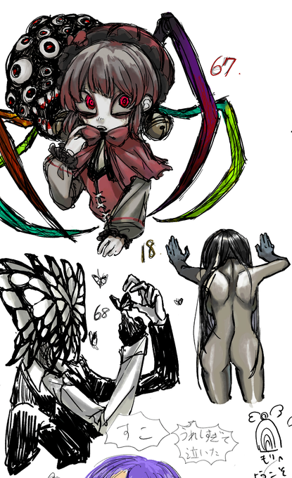 好きぴのみずと絵チャ絵チャしましたのでミゾレさんもおるしタグつけて出します!!!一枚目下の方と二枚目右はみず、静オケはやくも、憎しみと長鳥罰鳥はまに氏が描いてくれた…🙏