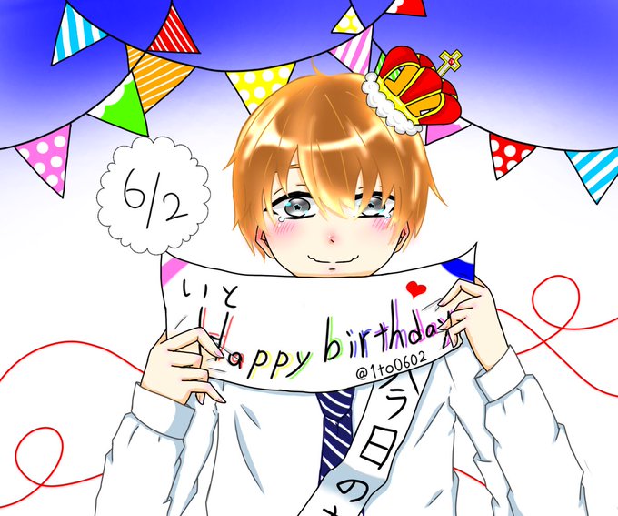 いと【@1to0602 】の誕生日イラストだぜ🎂 お誕生日おめでとう🎉🎉🎉 文字とか色々汚くてごめんな…( ´・ω・`)