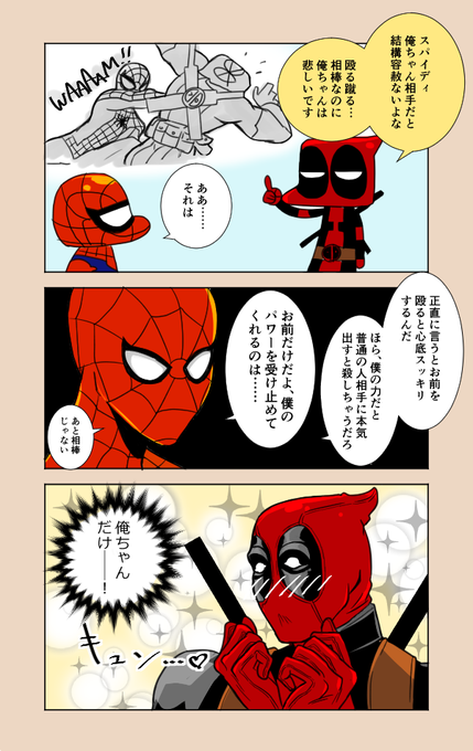 デップーに迫られてる時はやっぱり全力で嫌がって欲しいスパイディくん