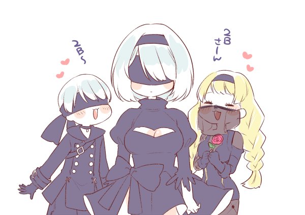 クールな2Bに懐く6Oと9Sかわいい