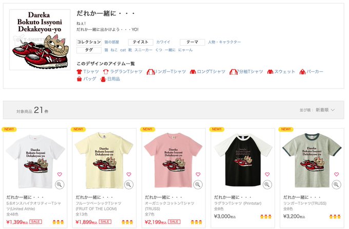 だれか一緒に・・・ https://t.co/9KdT8KyBm1 #Tシャツトリニティ #猫 #スニーカー #靴 #ロングt #cat #トートバッグ #ランチバッグ #Tシャツ #一緒に #連投ゴメン