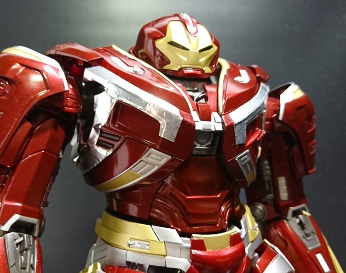 ハルクバスターMK-2、リペイントは気が引けたので胸のラインをマスキング&アルミのテープで製作。 アップだと汚いけど真っ赤よりはマシかな……? #フィギュアーツ写真部