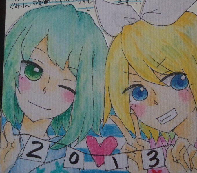 #無言で過去絵をあげる見た人もやる 頑張って色塗ってあるやつ探してきた……驚きのボカロ率