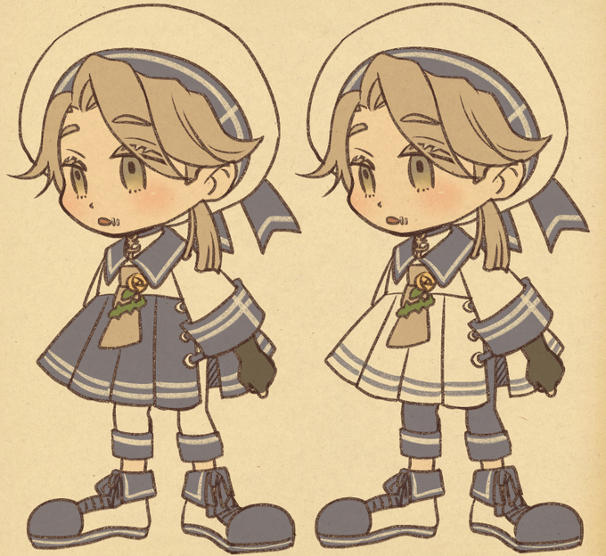生足に見えるけどちゃんとズボンなんですよ、という言い訳用に描いたちびセーラー⚰ 右のカラーにする筈が切り返しでうっかり塗り間違えた…🥺