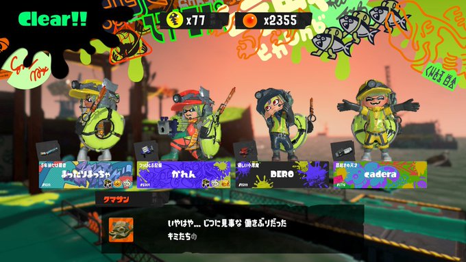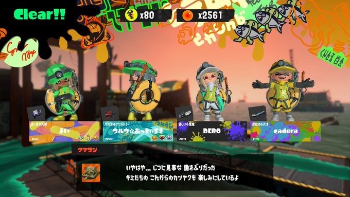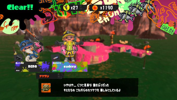 ロウワー「21時~23時の間主の友人のcaderaと通常のサーモンランとプラベバイトを遊んできたぜ😊通常のサモランもいいけど初プラベバイトもやってみて低い難易度なら2人だけでも意外と楽しめたな☺️めっちゃ楽しかった😆また遊ぼうぜ🎶」